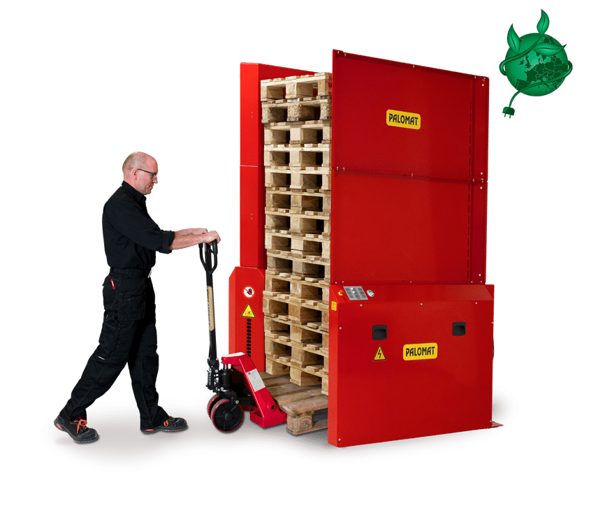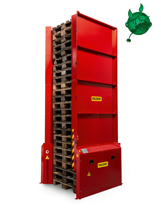 O organizador de paletes PALOMAT® Greenline permite-lhe automatizar totalmente o empilhamento e desempilhamento de paletes, sem necessidade de ar comprimido. Uma solução ecológica e eficiente para otimizar os fluxos logísticos internos.