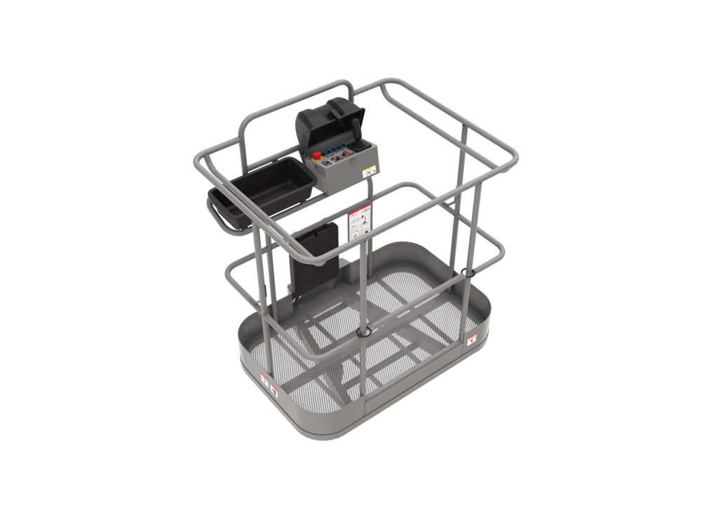 A cesta, com capacidade para dois operadores e piso perfurado, oferece estabilidade e segurança em ambientes industriais. Equipadas com baterias de longa duração e motores elétricos silenciosos, estas plataformas permitem um dia inteiro de trabalho sem necessidade de recarga.