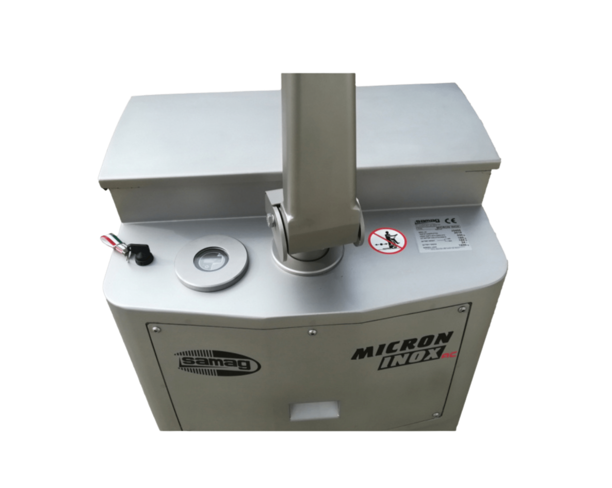 O MICRON INOX da Samag é um porta-paletes elétrico em aço inoxidável, especialmente desenvolvido para ambientes com elevados padrões de higiene e zonas de trabalho com espaço limitado. A sua estrutura compacta facilita manobras em corredores estreitos, sem comprometer a estabilidade e a capacidade de carga.